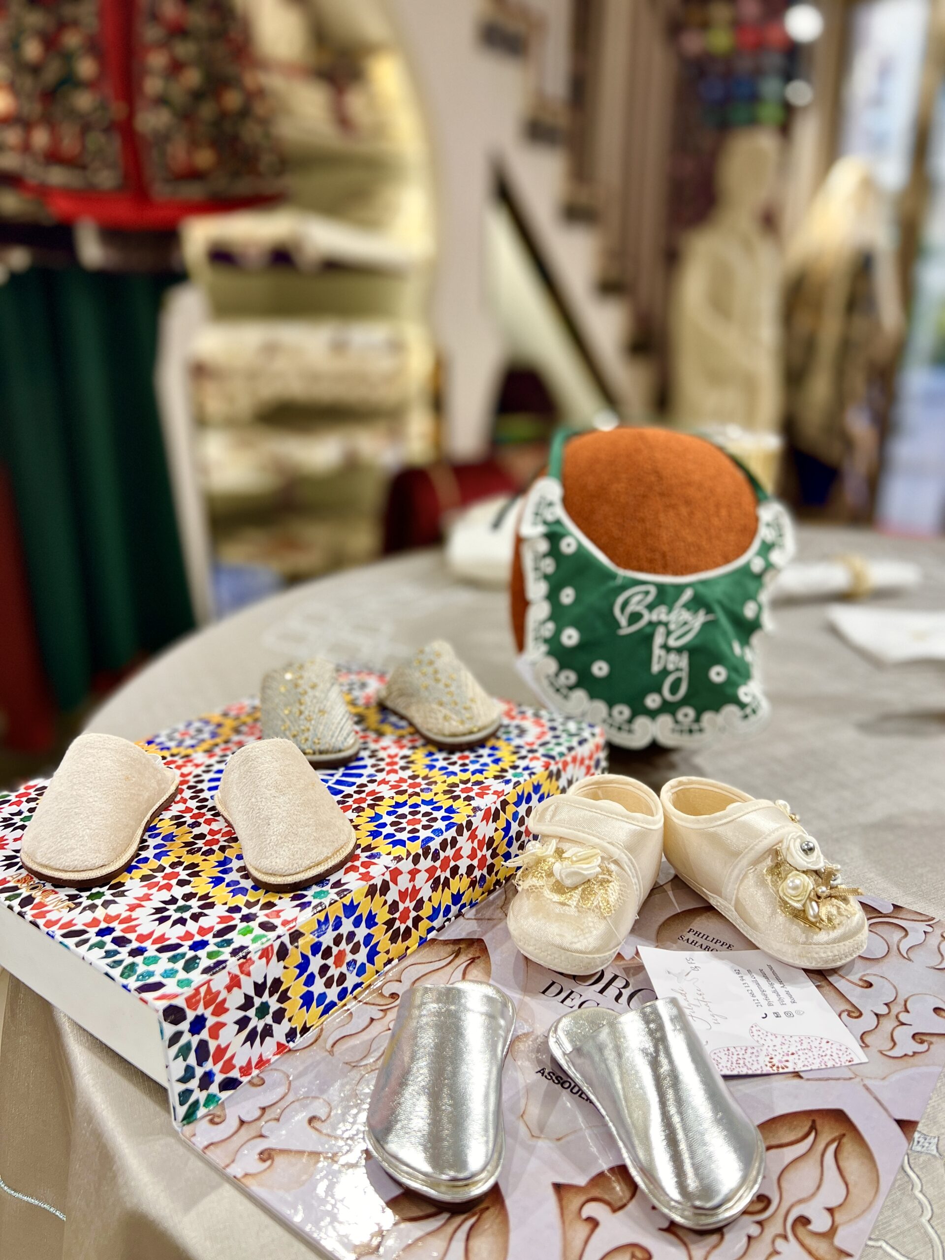 Babouche MOROCCAN HANDMADE  réalisée par les mains  artisane ,sur du cuir ou en velours. Maison Filyadi prend soin de compléter la tenue de vos petits.