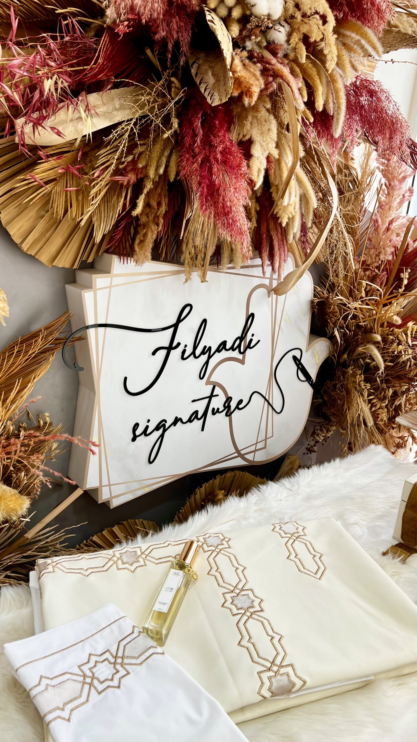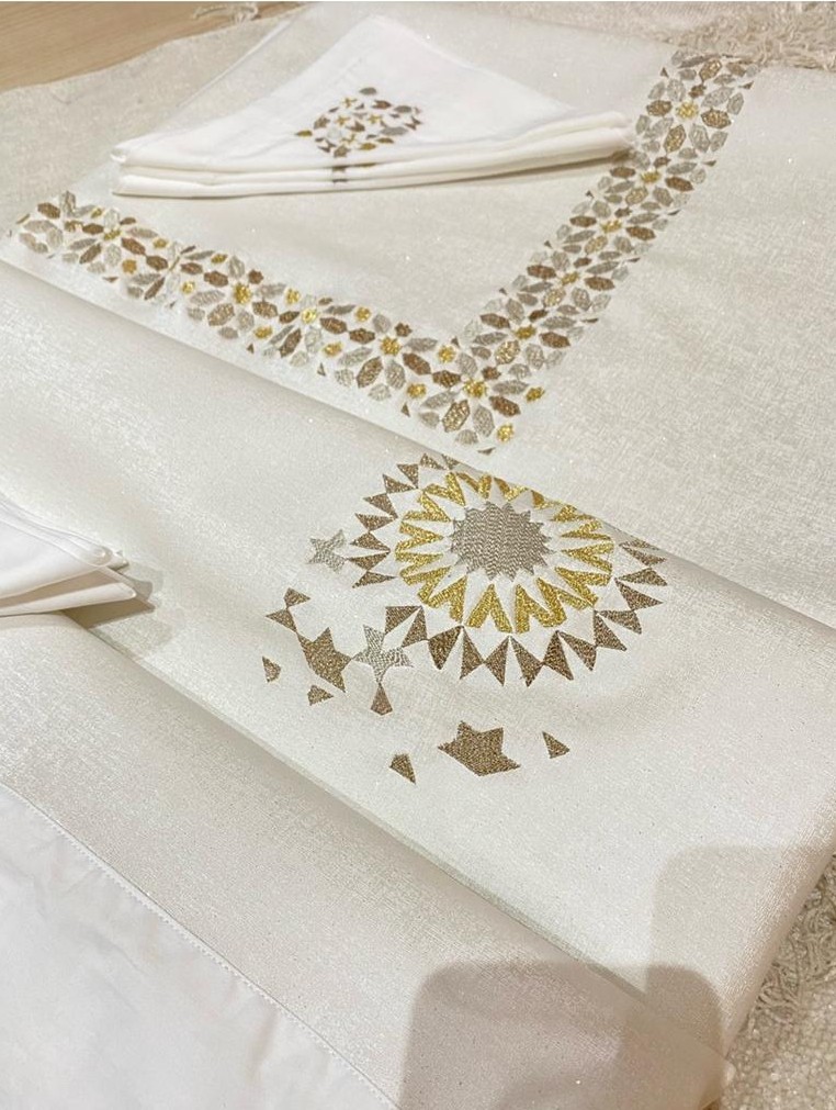 Zellij , Ouvrage de table à usage quotidien chic  et pratique sur une matière imperméable et lavable en simili cuir qualité premium brodé et accompagné par 12 serviettes de dressage.